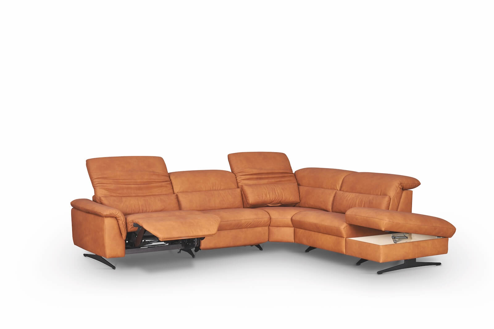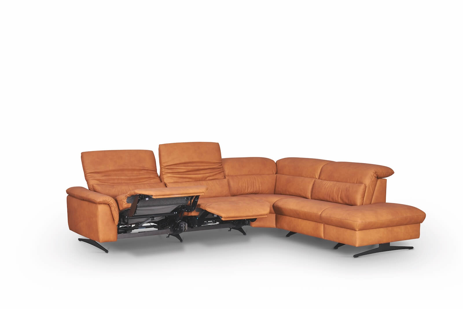 ALCATRAZ sofas are available in an extensive range of models with and without a reclining function. For particularly comfortable sitting or reclining, there are models with a manually adjustable gas pressure spring or electrically adjustable backrest. The electric adjustment is conveniently carried out using a toggle switch on the side of the seat.