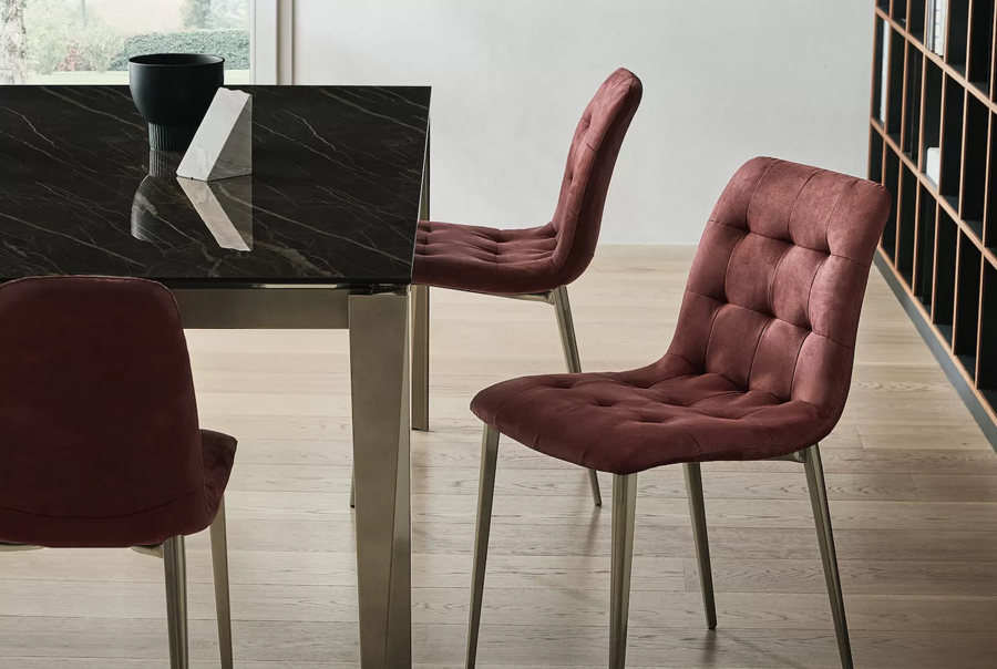 Chair with metal frame and swivel chair with die-cast aluminium frame. Upholstered and covered shell in Premium Technical Velvet, tessuto Nordic, Pure Virgin Wool, Velvet and Premium Leather.