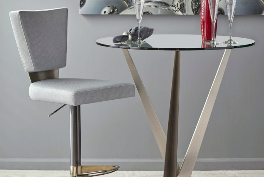 Sitting Pretty redefined! Monroe’s subtlety captures a vintage profile and updates it with modern materials. Enjoy the best of both worlds with this timeless design. A Champagne–plated accent dramatically supports and flexes with the plush contoured back enhancing the Monroe’s ultimate comfort. The polished chrome footrest attached to the durable powder-coat frame adds drama and function to the Monroe barstool. Adjust the seat height between counter or bar heights with the hydraulic gas-lift. It is easy! The Monroe barstool is available in various durable powder-coat finishes. Be sure to check-out all our fabric choices! Let the party begin!